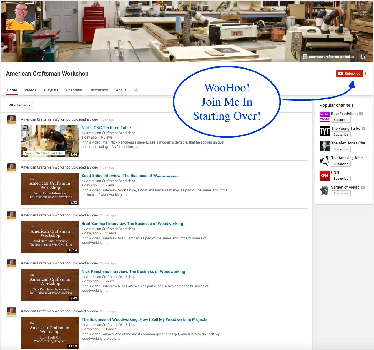 As I post this, I have 1 subscriber, so I hope you will subscribe and be a part of building the American Craftsman Workshop channel!